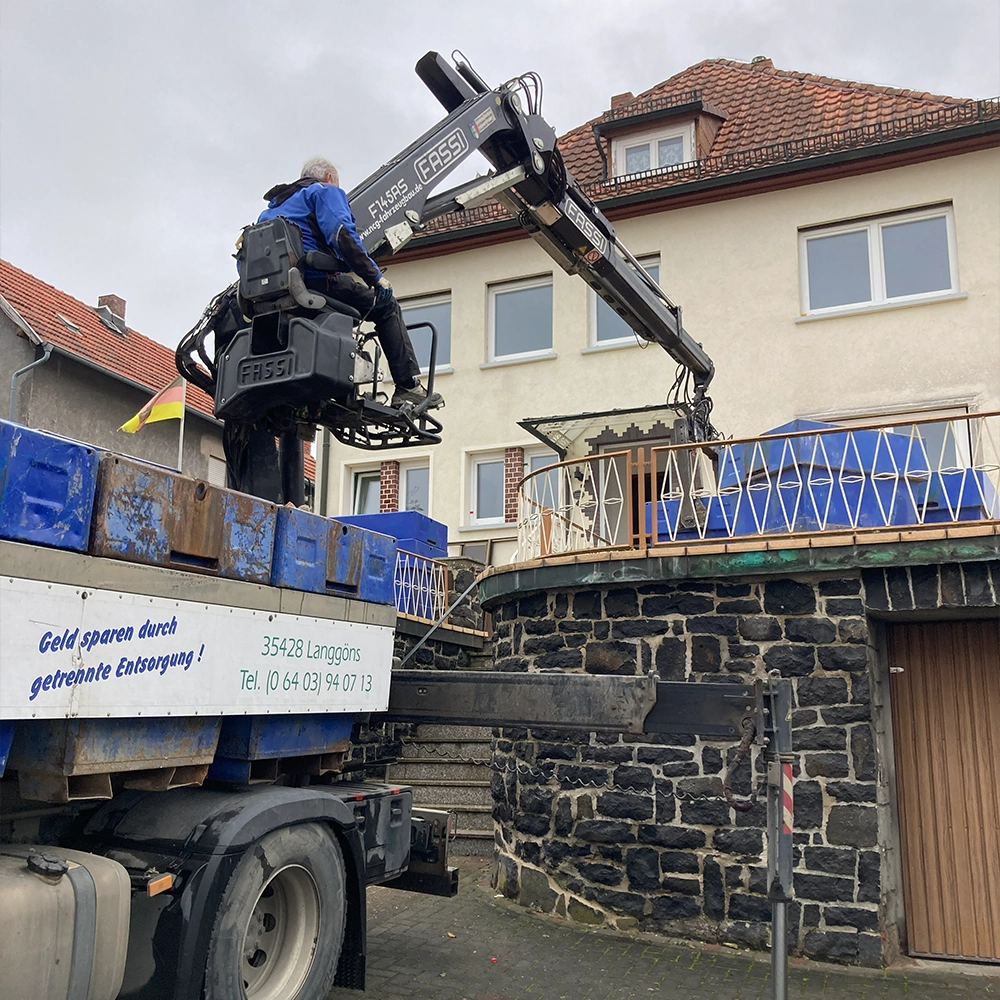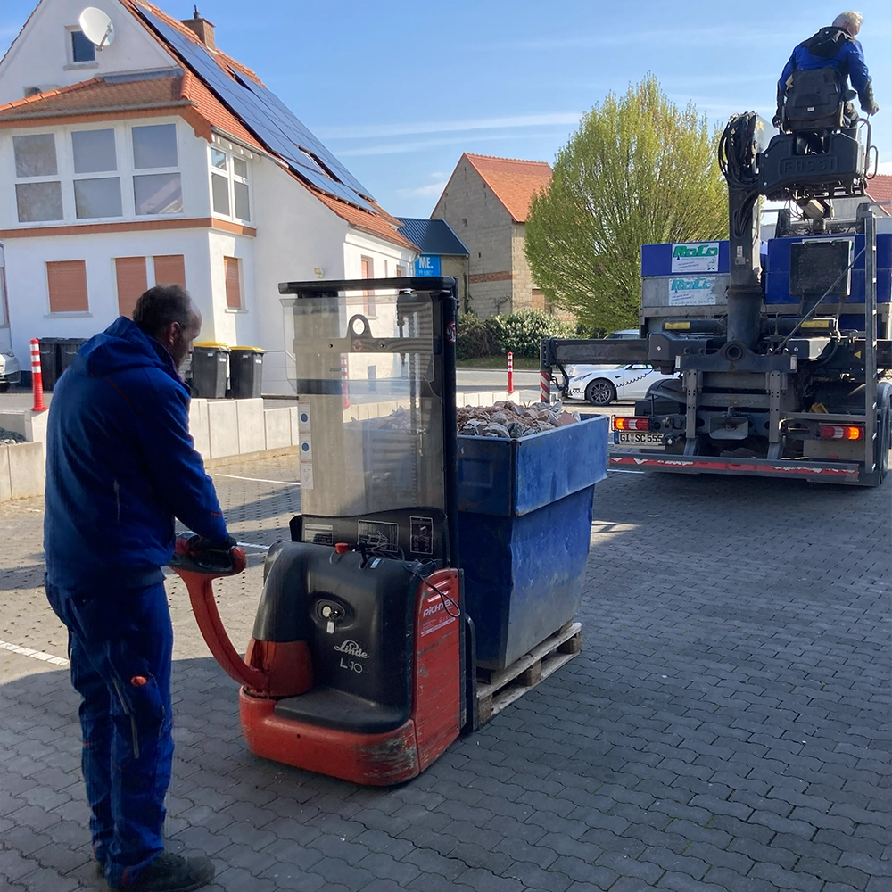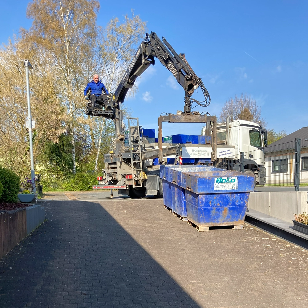 Dank unseres mobilen Kranwagens positionieren wir die Minicontainer punktgenau am richtigen Ort, oder entleeren diese genau dort, wo du dein Material benötigst.